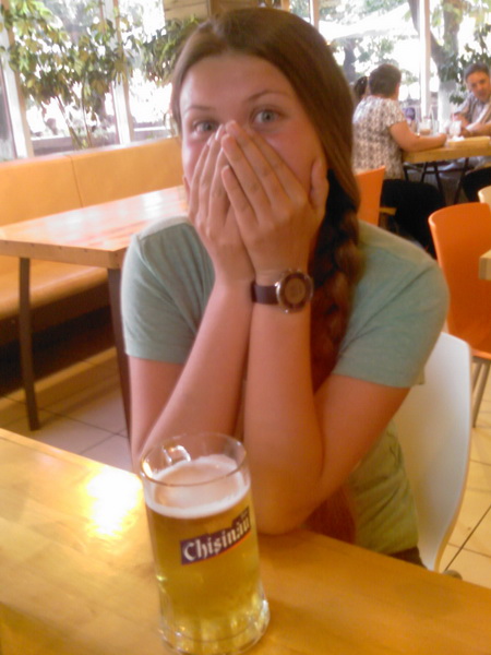 Жаль, что очень быстро ушли Корвин, Вита. Дюк мог бы остаться, знай, что будет транспорт. А присутствовали - Светика, Тичер, Уфо и Элеонора, Ванлант, Шопоголик с сестрой, я с другом - ник на форуме Felix вроде. Эльза тоже крайне не надолго посетили нас... К сожалению прифти на второй день праздника не могу физически, вчера перепил пива, наверно литра 4 выпил. Там не руссалки купались, а присходила "речная" иллюстрация этой темы и её обсуждение. По ходу это на сходках форумчан становиться традицией. Повезло еще, что кто-то с кем-то служил и обошлись без штрафа. А вот фото лягушки-путешественницы Светики в ПМР: Её бы одеть в традиционное русское деревенское платье, и можно в кино снимать как русскую красавицу. На фоне достопримечательности - пива Кишинеу )) Вообще, какие есть в Тирасполе/Бендерах достопримечательности, что бы Света сказала - "Обалдеть, я такое не видела нигде"? Темка обсуждения в кафешке была. И 2 ужасных фото, жду нормальный фотоотчет и просто отчет от Тичера.