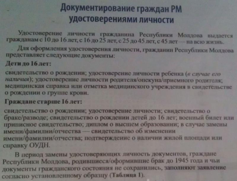 Очередная неудачная попытка подать документы, зато сфоткал всё что можно. Возможно, кому-то понадобиться эта информация. Бесплатный паспорт гражданина Молдовы Прописка в Молдове - документы Закон о гражданстве в республике Молдова: registru.md/img/law/legi/1024_2000_06_02_mod_ru.pdf |