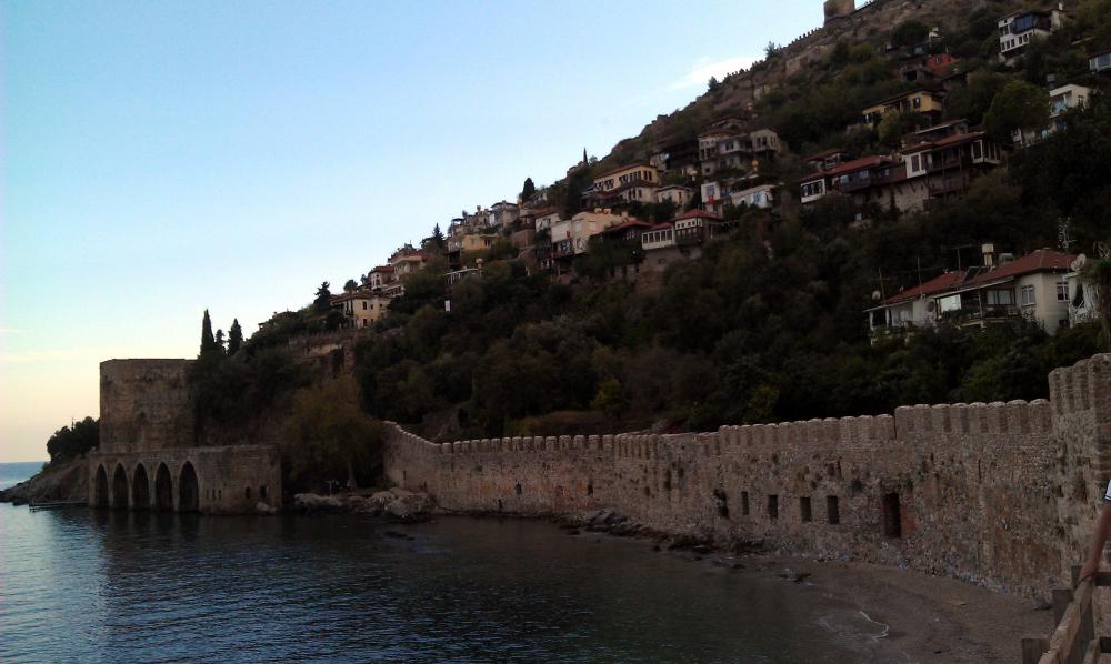 И немного достопримечательностей Турции, просто интересные фото мест, которые меня заинтересовали. Во время прогулки по городу зашли за отели и дома, где началась банановая роща. Интересно было увидеть орошение бананов. Кстати, бананы в Турции маленькие, не особо сладкие - те что мы покупали. Вид с горы в Алании - Бог пустил немного света на меня )) Маяк в Аланьи, красивая стана крепости и соседство домов и мечетей. |