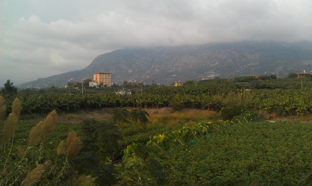 В почти трехчасовой дороге к Алании (мы были в в её пригороде) в основном видны такие типичные турецкие дома (почти на всех 3-5 этажных домах есть металлическая бочка для согрева воды солнцем) и довольно часто встречаются теплицы: Вот еще несколько фото типичных домов (часто есть бассейн во дворе) у берега моря, и вид на Махмутлар (Алания) с начала горы. Как видно - отели рядом с банановой рощей. |