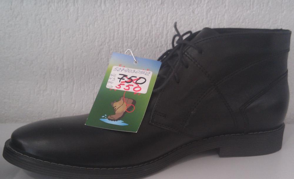 Фотографии обуви "Тигина" в магазине "Флоти". На фото видны цены на обувь. Ботинки из кожи. |