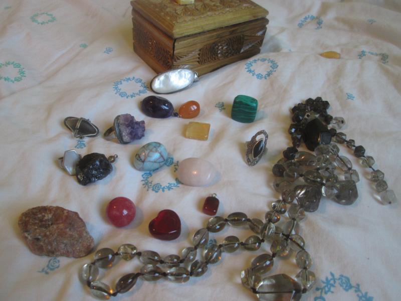 среди которых чароит, агат, лазурит, кварц, сердолик, горный хрусталь, тигровый глаз, змеевик, яшма, лабрадорит и что то ещё. приедет с описанием ;) ты тоже решила заняться собирательством ;) хорошо :)