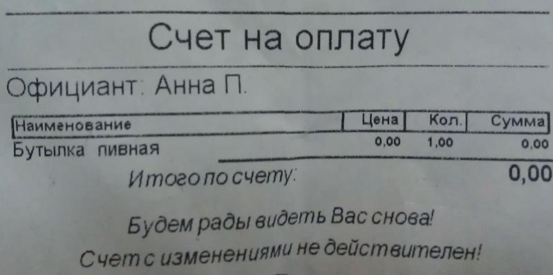 Вчера были в новой "Ла плачинте" в новом Шерифе на набережной. Хорошо посидели, особенно цены там демократичные, вот мой чек.