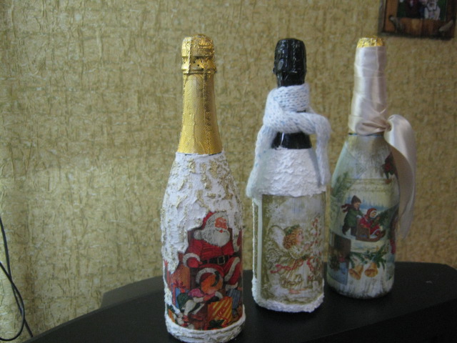 А вы готовы к Новому году? Хотите удивить и порадовать близких? Предлагаем украсить ваш праздничный стол необычной бутылкой шампанского, выполненная в стиле хэнд мэйд. Можно украсить любую. предложенную вами бутылку. Тел: 077734237.