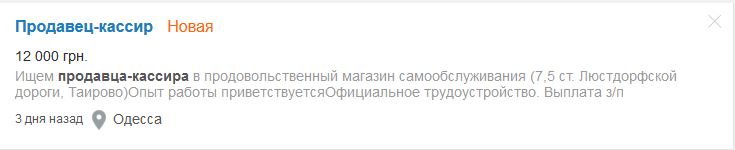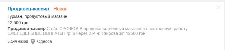 Это полной бред ;) Это просто невозможно по закону, потому что минимальная зарплата в Украине составляет 4173 гривны - 160$ (приблизительно 11 тыс руб). Меньше платит невозможно. А примерно теперь в Одессе полно предложении в маркетах - продавец, кассир - предлагают от 12 000 гривень.