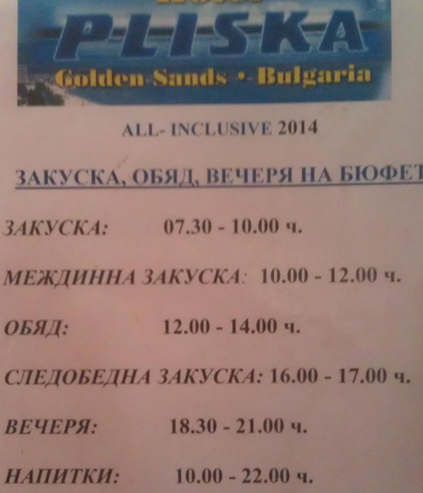Вот расписание работы ресторана в отеле Плиска. В принципе как ив других всё.