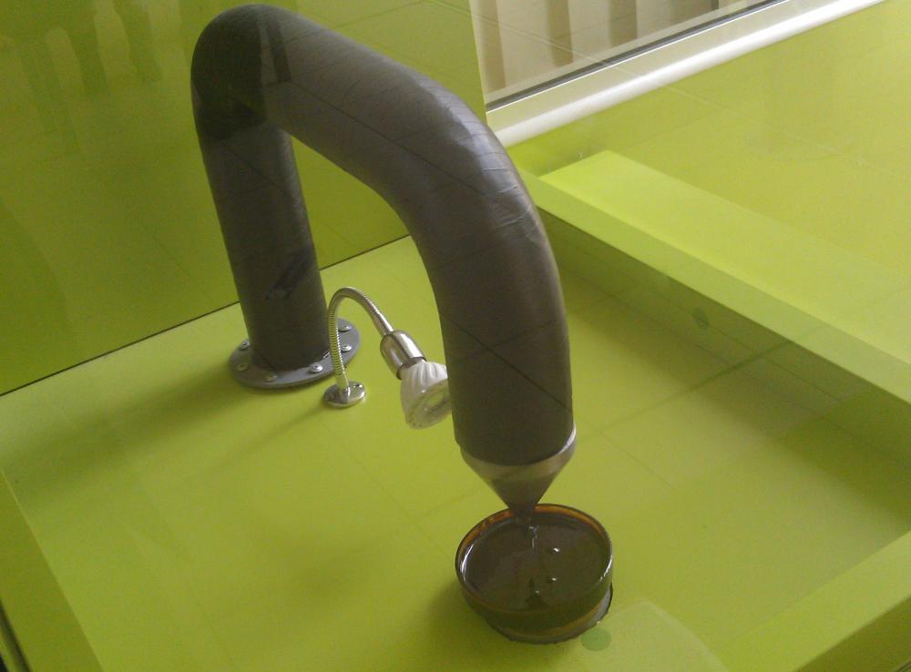На первый взгляд может показаться, что песок в этом экспонате кипит как жидкость. На самом деле песок находится в состоянии псевдоожижения. В этом состоянии может находиться любой зернистый сыпучий материал, например крупа, сахар или зерна попкорна.