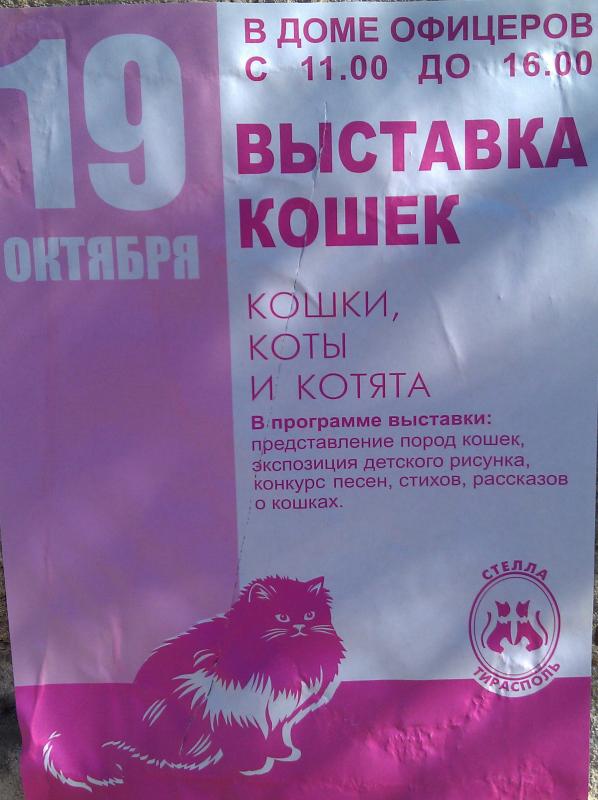 19 октября в Тирасполе в доме офицеров будет выставка кошек - кошки, коты, котята. |