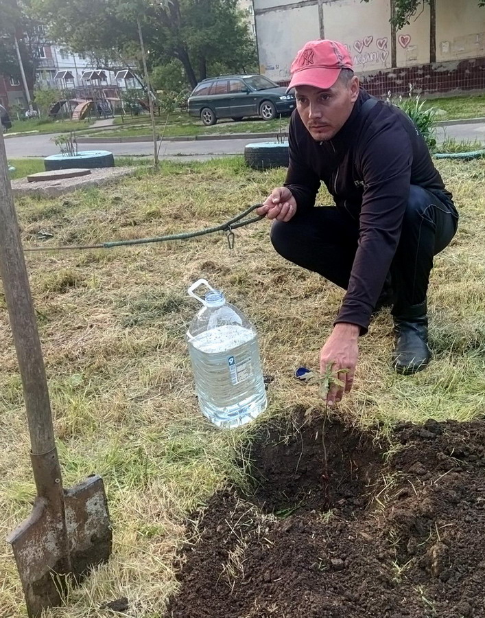 Вчера с товарищем рассадили саженцы дуба, а еще посадили несколько каштанов на придомовых территориях. |