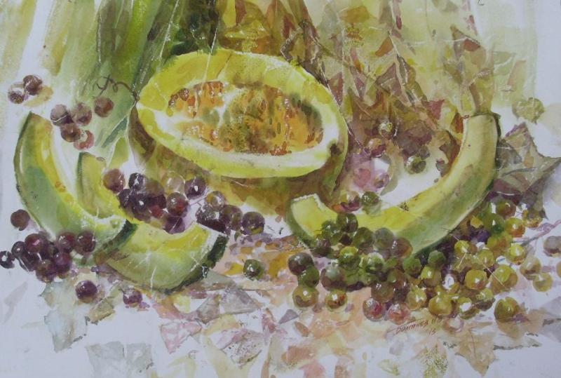 Дыня и виноград 2014г. Бумага и акварель. Размер 42 на 60 см. |
