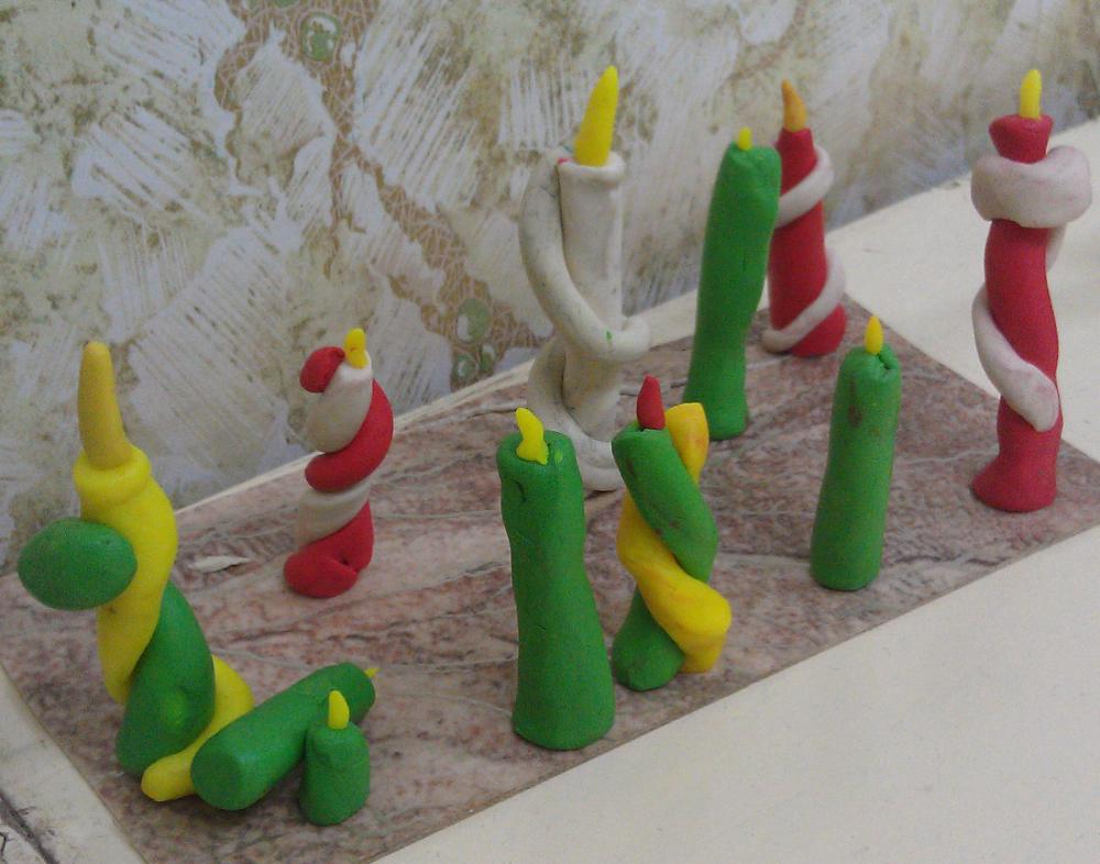 Свечки из пластилина. Детки в 6 лет в садике на занятиях такое делают. Аппликации из цветной бумаги - осеннее дерево. |